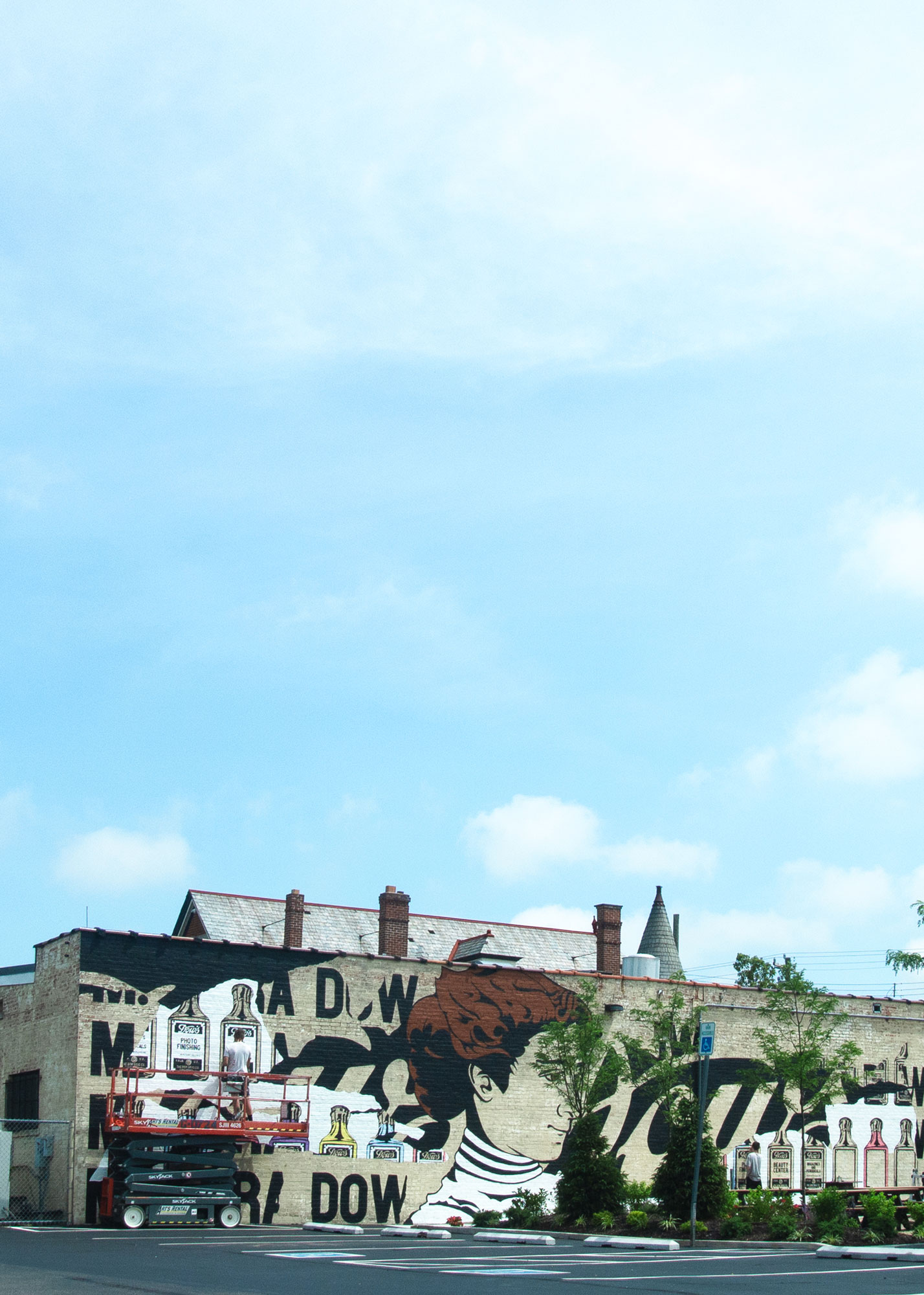 The mural draws inspiration from period-appropriate ghost signs and the bold aesthetic of Pop Art, serving as a visual testament to Cora Dow. Designed by Christopher A. Ritter, it features a 17-foot-tall portrait of Cora overlooking College Hill. Surrounding her are a series of iconic Dow’s Drugs medicine bottles, guiding viewers through the artwork and illustrating the wide variety of products and services the stores provided to their communities.