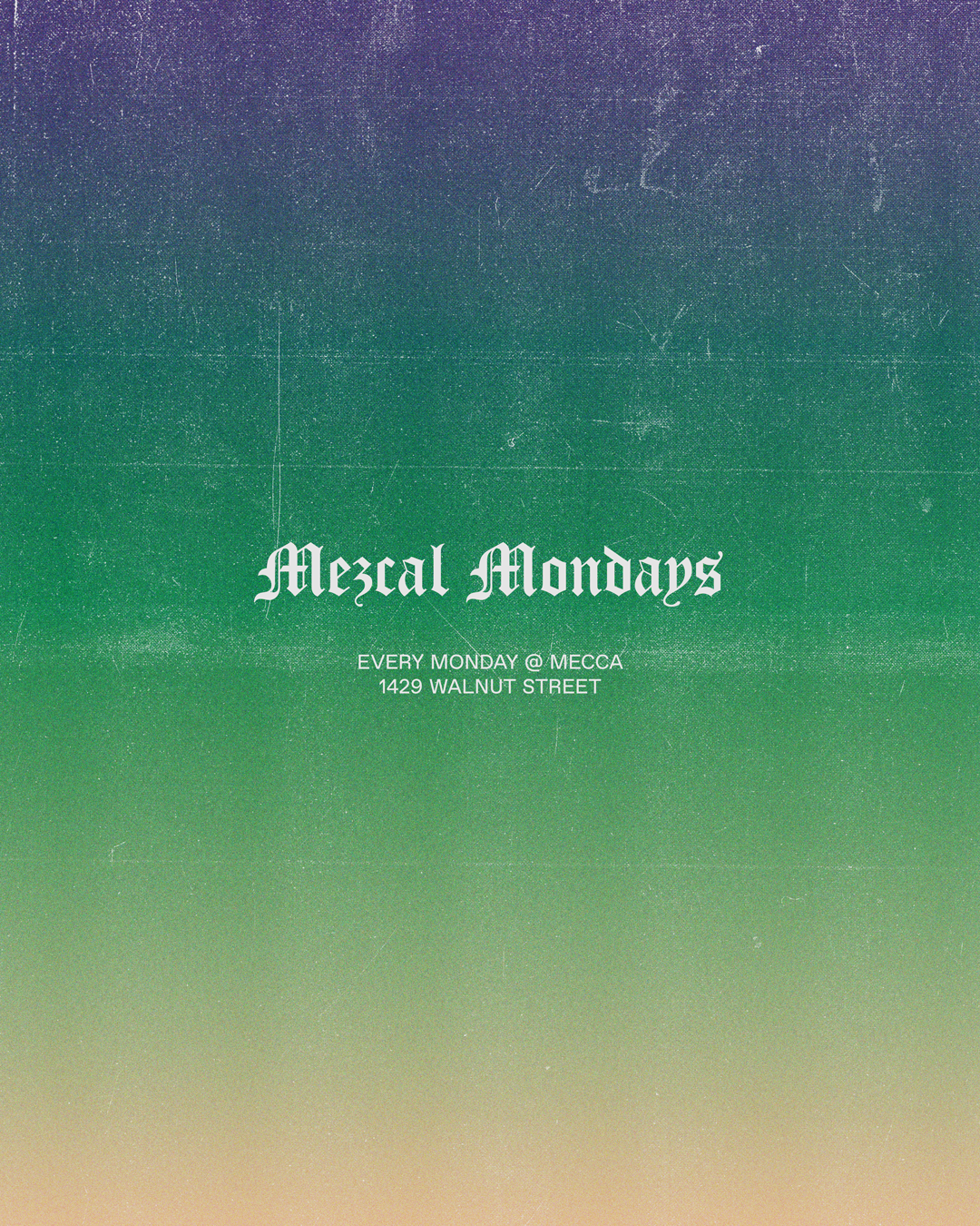 Poster artwork for Mezcal Mondays at Mecca, a bar in Cincinnati, Ohio.