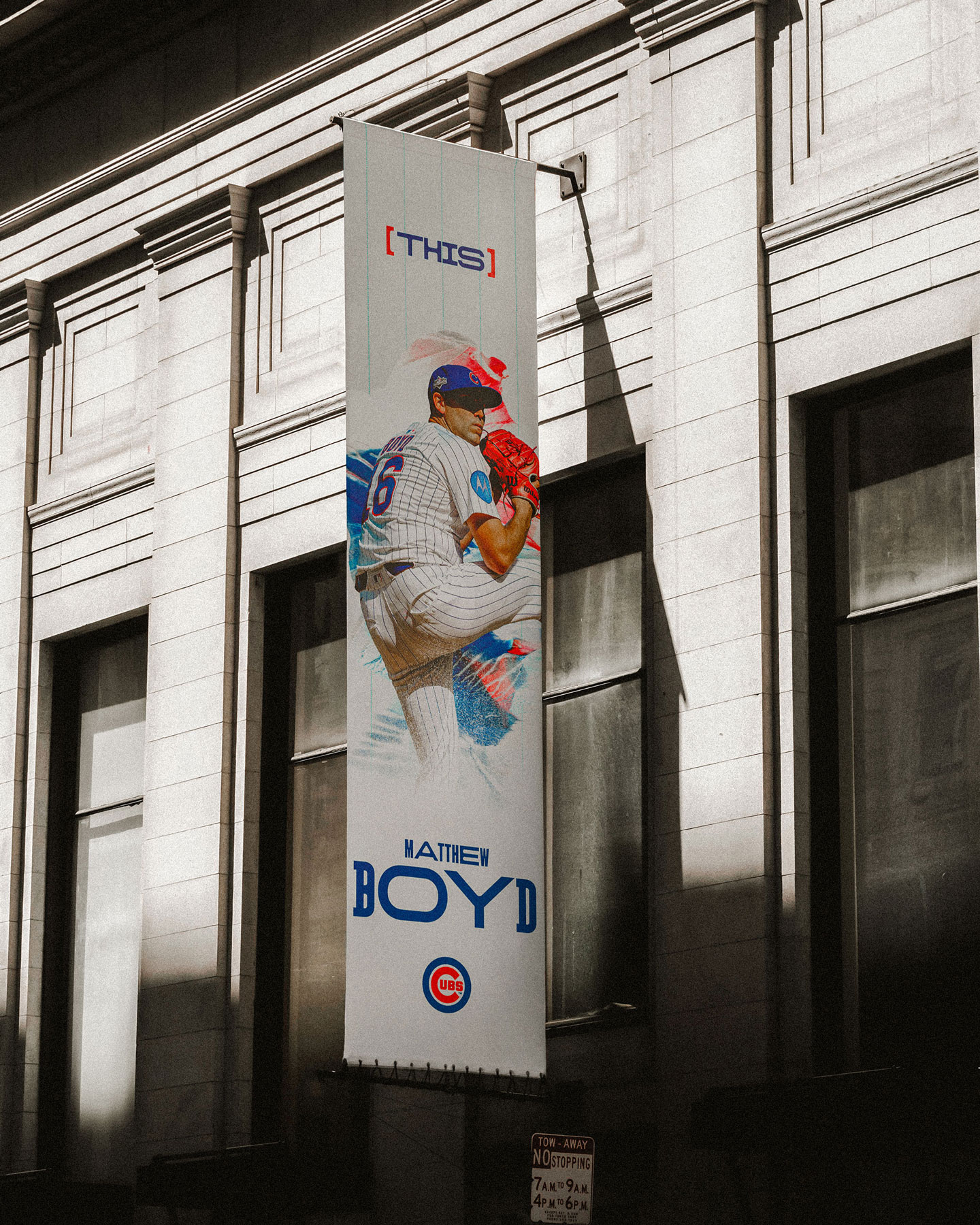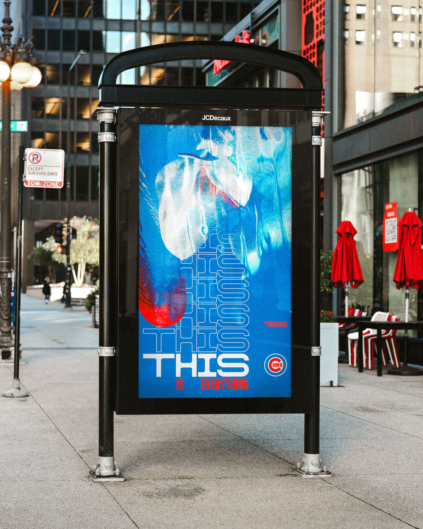 Handcrafted paint gestures transform photography into manifestations of feeling, giving physical form to the electricity of Wrigley Field. Combined with cinematic imagery, custom typography, and a distinctive color system, the visuals balance authenticity with myth, creating a flexible language that feels tactile, atmospheric, and unmistakably Cubs.
